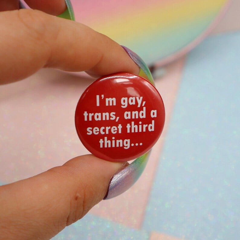 I'm Gay, Trans, And A Secret Third Thing... Button Badge