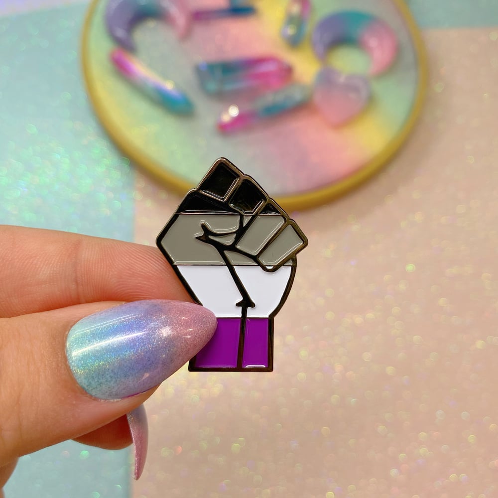 This Ace Pride pin is for all asexual people, whether you just realised you're ace or you've known for years. Your identity is real, valid, and Yours.