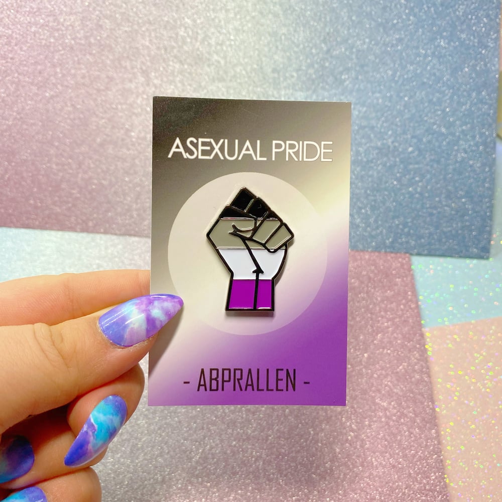 I designed this asexual Pride pin in 2019, following on from the love I received in regards to my Trans Pride pin and have since created a number of other LGBT pride flags in the same style. This pin measures 34mm and affixes to all suitable fabrics such as hats, jackets, shirts, and bags.