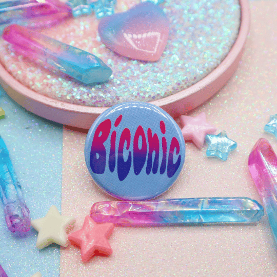 This button badge features the message "Biconic ". It measures 32mm, and is made to last. Really show off your true colours with this button; attach it to jackets, bags, tees, hats, or anywhere else you can think of.