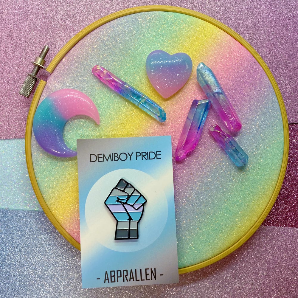 This Pride pin is for all Demiboys, whether you just realised you're a Demiboy or you've known for years. Your identity is real, valid, and Yours.