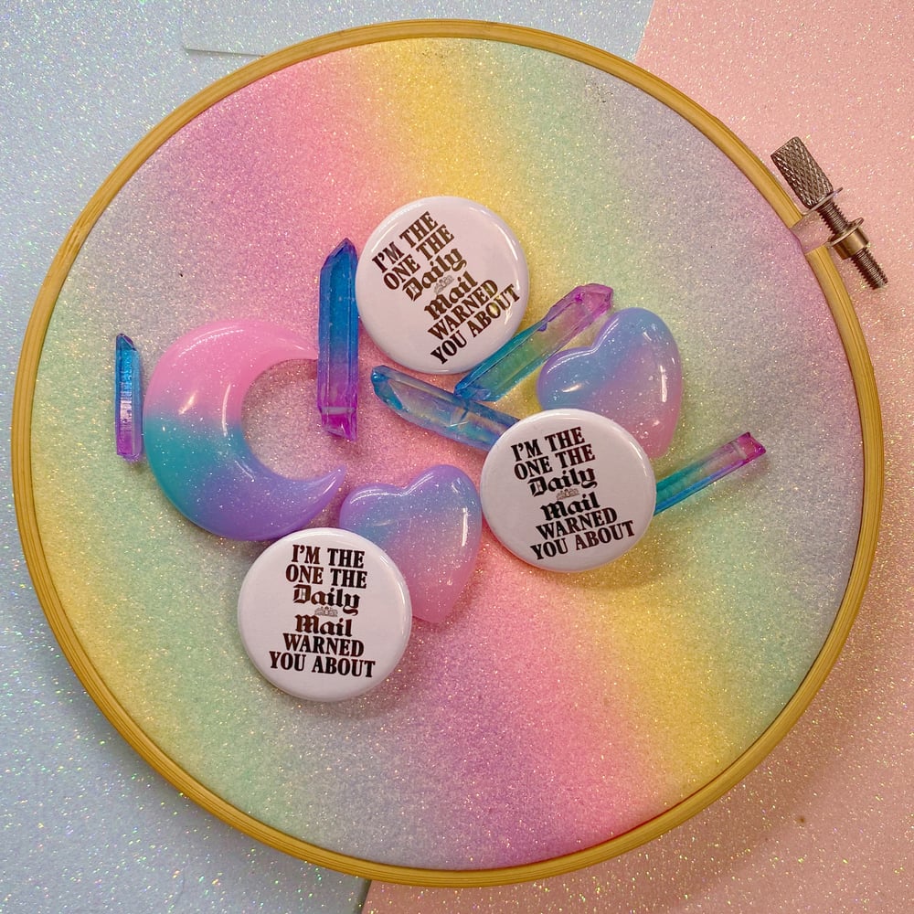 This button badge features the message "I'm The One The Daily Mail Warned You About" because lets be honest, they're always drumming up fear about one marginalised group or another. It measures 32mm, and is made to last. Really show off your true colours with this button; attach it to jackets, bags, tees, hats, or anywhere else you can think of.