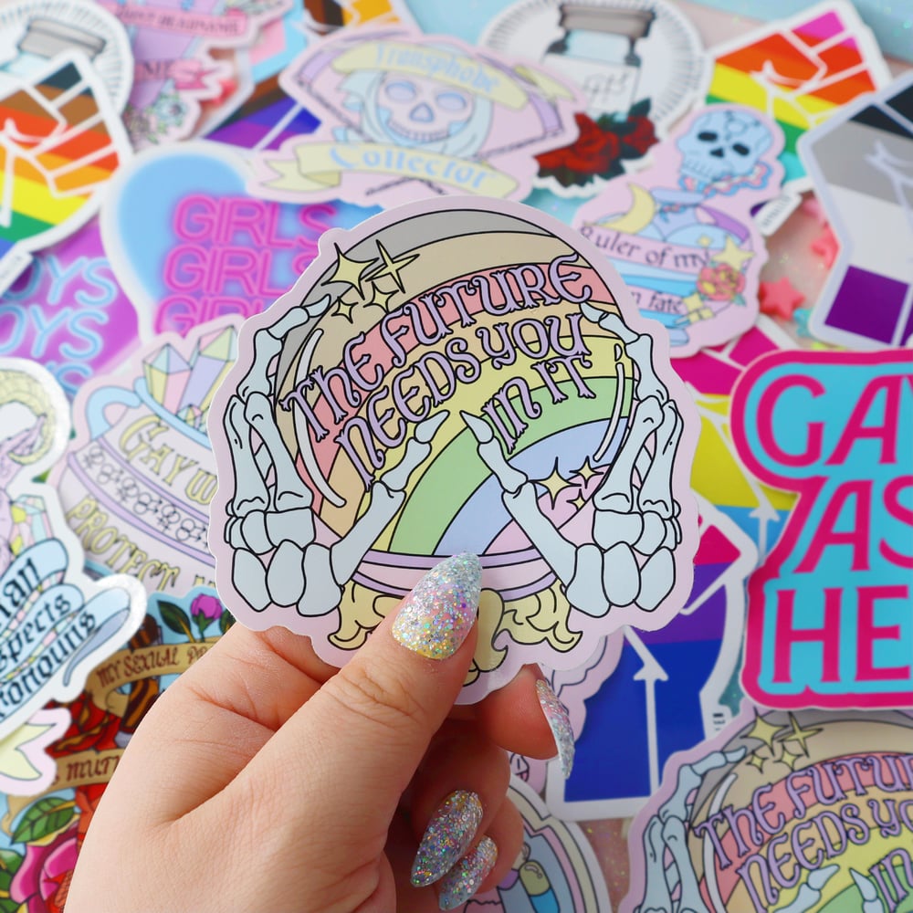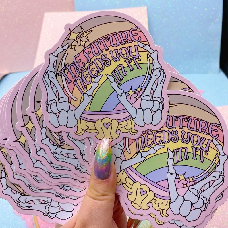 This vinyl sticker measures 10cm at its widest point, it's water-resistant and made to keep its vibrancy looking its freshest!